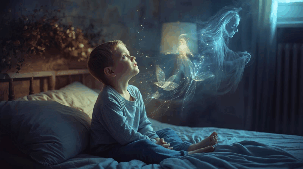 Pomáhá, když dětem poskytnete rámec pro porozumění jejich zážitkům. Jednoduše jim vysvětlete, že někteří lidé mají schopnost vnímat energie a bytosti, které ostatní nevidí, a že je to přirozená schopnost, nikoli něco divného nebo špatného.