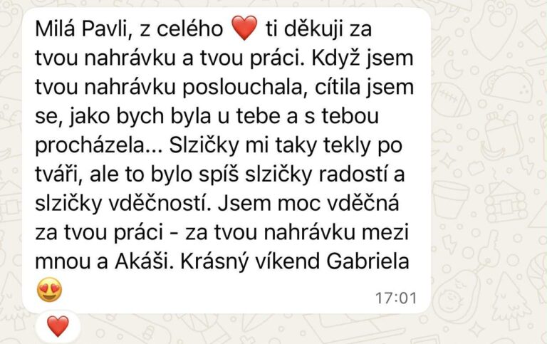 Všechno překonalo mé představy. Ta zvláštní energie, která mnou prošla při telefonátu s Pavlou je nepopsatelná, opravdu.
